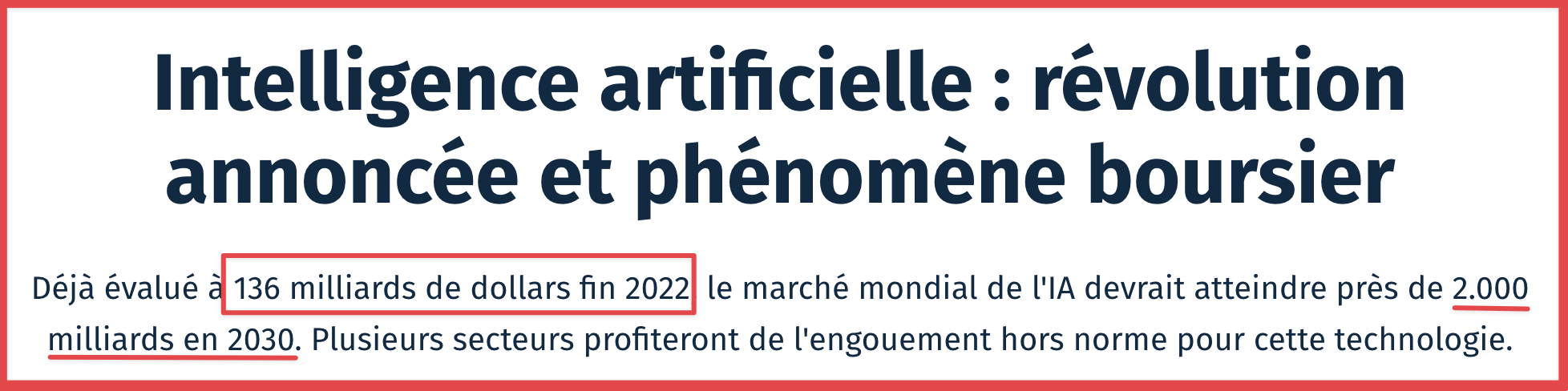 L'IA est un marché en pleine explosion, où les entreprises investissent massivement pour rester compétitives.